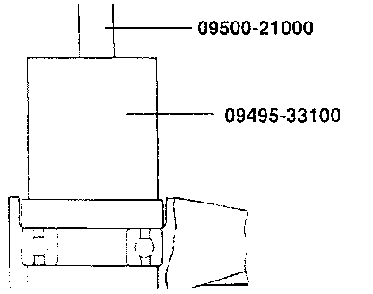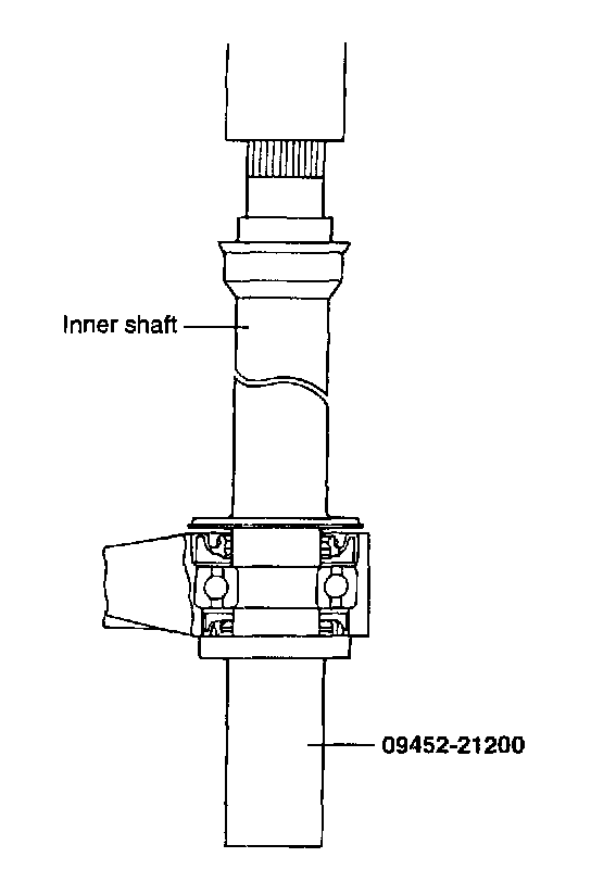 5. Using the special tool, support the center bearing as shown in the figure, then press in the inner shaft.