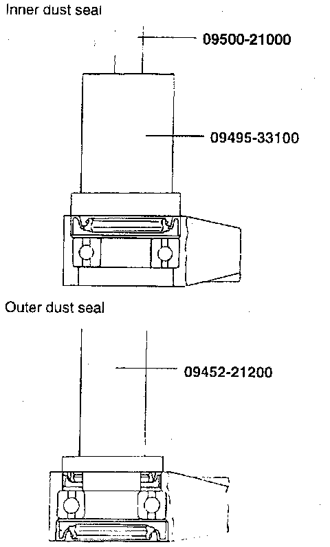 4. Using the special tool, tap in the dust seals until they are flush with the edge of the center bearing bracket.