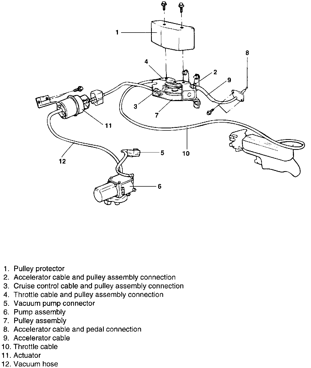 4. Disconnect the cruise control cable and pulley assembly connection.