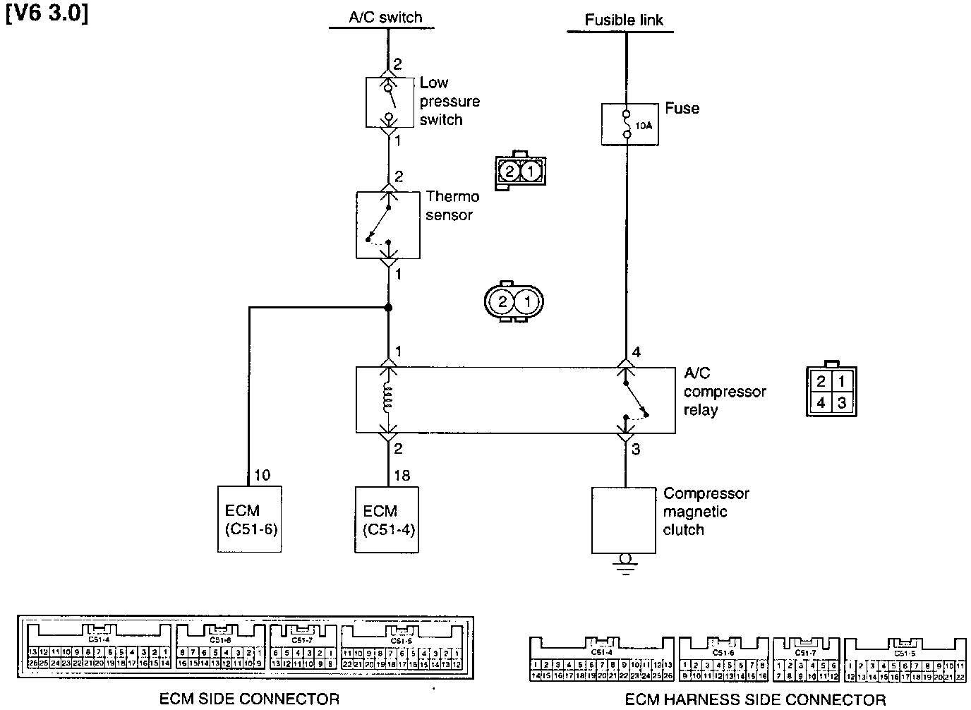 NOTE: If the air compressor magnetic clutch is not activated when the air conditioing switch is turned on during idling, faulty air conditioning control system is suspected.