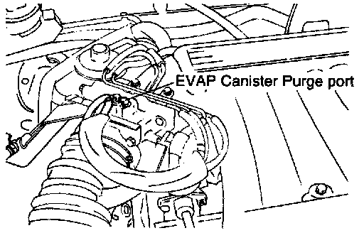 1. Disconnect the vacuum hose from the throttle body EVAP canister purge hose fitting and connect a vacuum gauge.