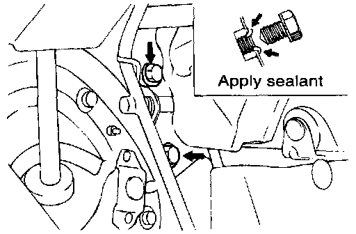 2. Apply sealant to the bolt mounting hole, and tighten the accelerator arm bracket.