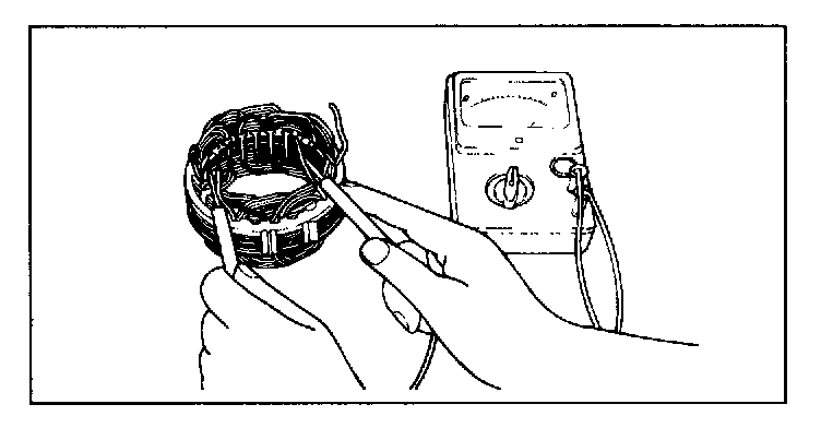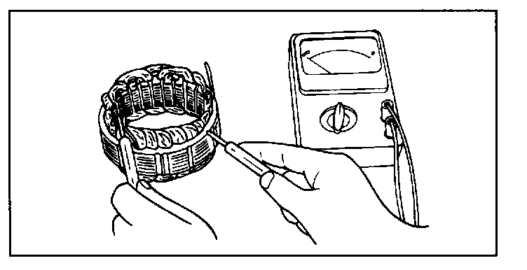 2. Check the coil for grounding. Check that there is no continuity between the coil and the core. If there is continuity, replace the stator assembly.
