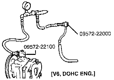 1. Disconnect the pressure hose from the oil pump, and then connect the special tool between the oil pump and pressure hose as illustrated.