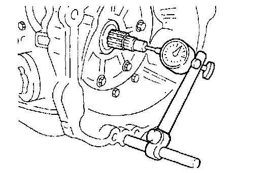 Mount a dial indicator to the converter housing with the Dial Indicator Support. Make sure that the indicator plunger is seated against the end of the input shaft.