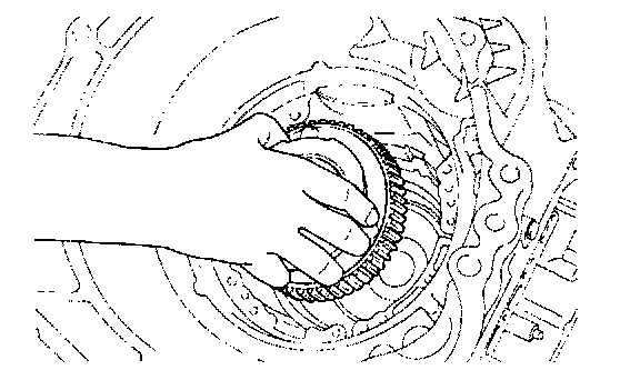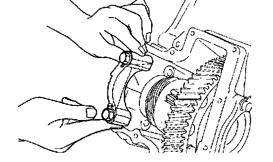 NOTE: The thrust bearing may be stuck to the end clutch hub.