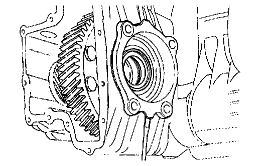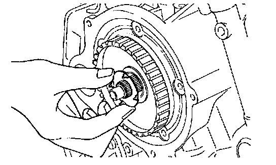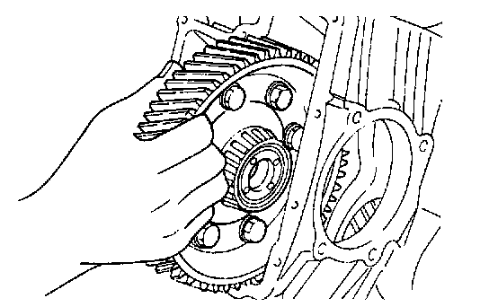 50. Remove the internal gear, output flange, transfer drive gear and bearing as an assembly from the case.