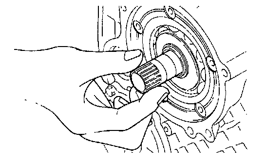 When checking end play, pull or push on the input shaft with pliers. Be careful not to scratch the input shaft. Record the reading for reference when reassembling the transaxle.