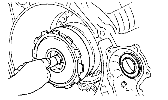 32. Pull the input shaft, and then remove the front and rear clutch together.