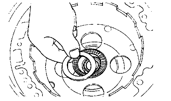 31. Remove the fiber thrust washer and thrust race.