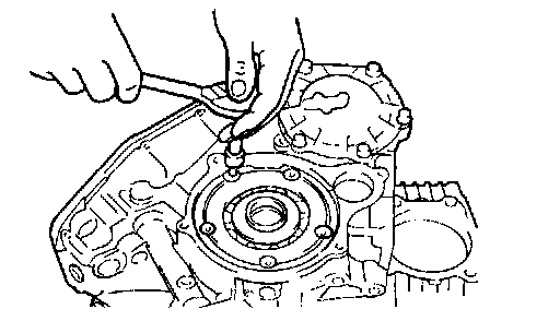 25. Remove the 6 idler gear cover bolts and remove the idler gear cover with gasket.