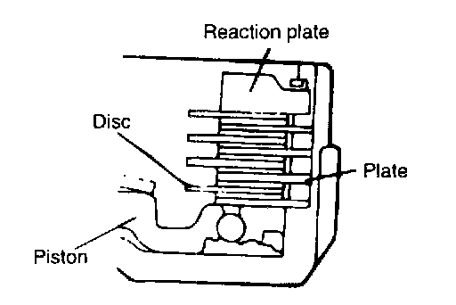 5. Install the clutch plate, clutch disc and reaction plate to the end clutch retainer. if the reaction plate, clutch plate and clutch disc are reused, install them in the same order they were disassembled. Apply a coating of automatic transaxle fluid.
