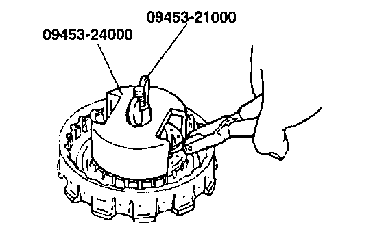 3. With the return spring compressed using special tool (0945321000, 09453-24000), remove the snap ring, then the spring retainer and return spring.