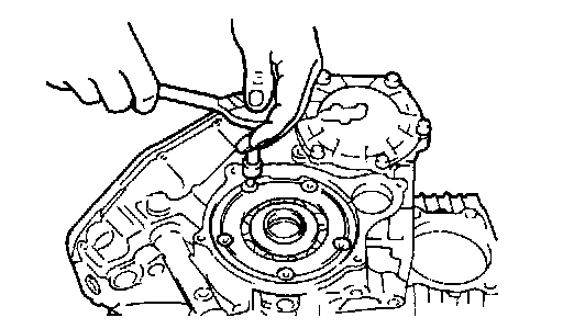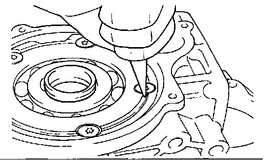 12. Install the bearing retainer, and tighten the screws to the specified torque, apply a 5 mm (0.2 inch) width of sealant (3M Stud Locking No. 4176) around the top. The sealant should not protrude out from under the screw head.