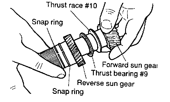 3) Attach thrust race #10 to the forward sun gear.