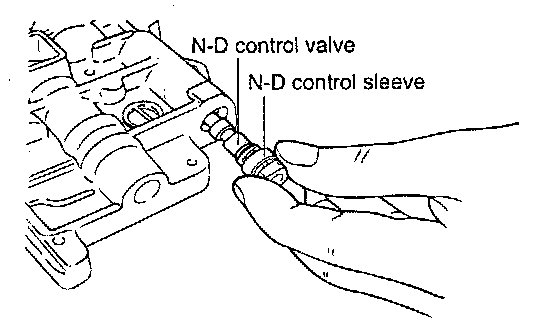 18. Remove, from the rear side of the upper valve body, the N-D control sleeve and the N-D control valve.
