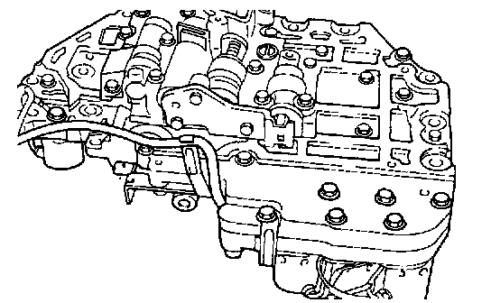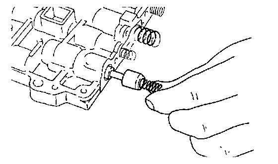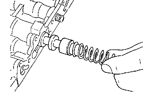 25. Remove the three bolts from the lower valve body, and then remove the end cover, adjustment screw, and reducing spring.