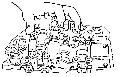 1. Install the lower valve body, the damper clutch control spring, damper clutch control valve, and damper clutch control sleeve.