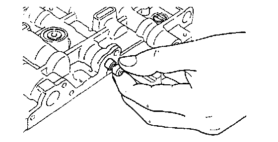 When removing the bolts, be sure to firmly press the front end cover (as shown in the illustration) so as to prevent the spring from causing the adjustment screw to pop out.