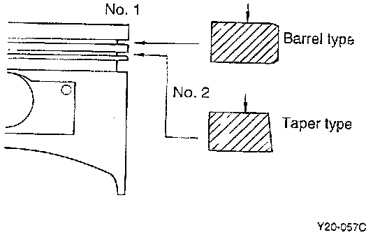 When replacing the ring with out correcting the cylinder bore, check the gap with the ring positioned at the low part or cylinder that is less worn.