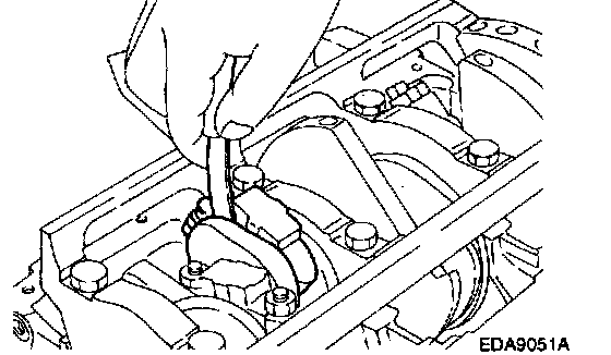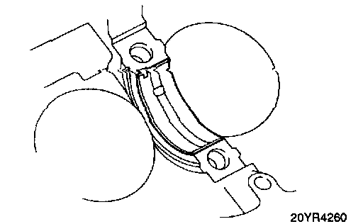 3) Install the bearing and cap. Tighten to the specified torque. During this operation, do NOT turn the crankshaft.