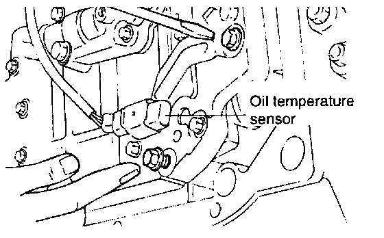 Secure solenoid valve and oil temperature sensor harness at locations shown. Especially the pressure control solenoid valve (PCSV) harness must be routed and clamped as shown in the illustration since it is separated from other harnesses. Failure to secure the harness results in its contact with the detent plate or parking rod.