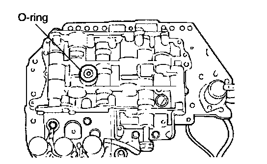 7. Check to be sure that the O-ring is installed on the upper surface of the valve body at the place shown in the figure.