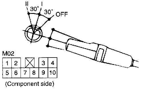 Check the continuity between the terminals while operating the switch.LIGHTING SWITCH (M02)