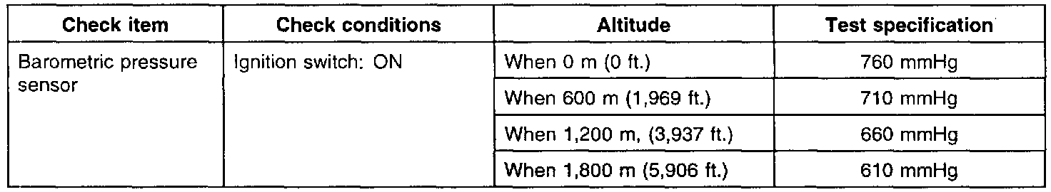 2. If the pressure of the barometric pressure sensor drops greatly during high speed driving, check the air cleaner for clogging.