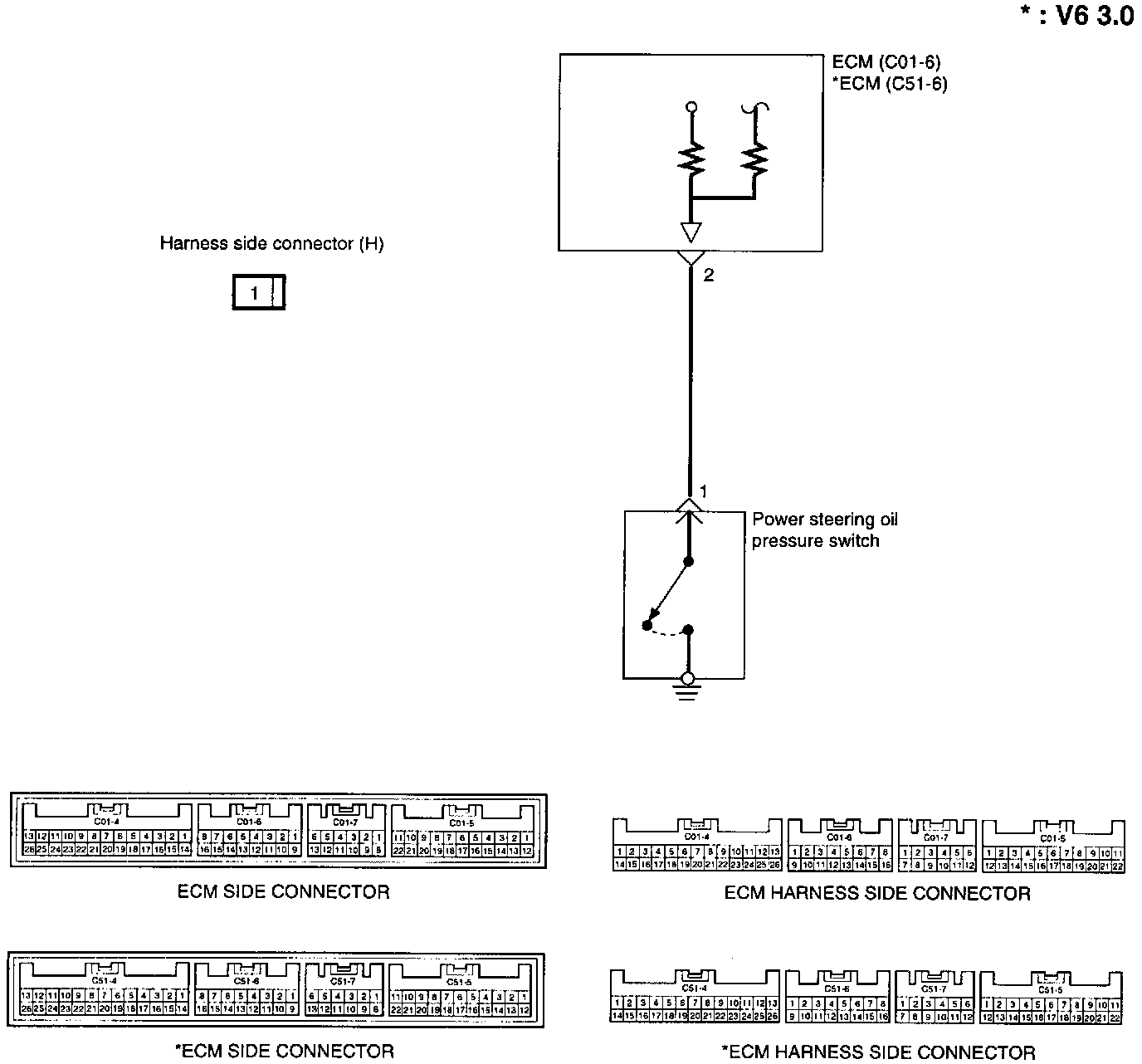 The power steering oil pressure switch senses the power steering load into low/high voltage and inputs it to ECM, which then controls the idle speed control motor based on this signal.
