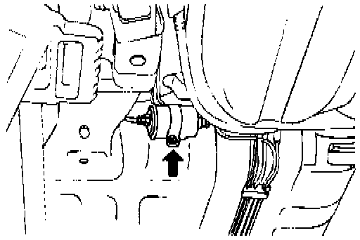CAUTION: Be sure to reduce the fuel pressure before disconnecting the fuel feed pipe, otherwise fuel will spill out. Cover the pipe connection with shop towel to prevent fuel from splashing (caused by residual pressure in the fuel line).1. Raise the vehicle and remove the two fitting nuts while holding the fuel filter nut securely.