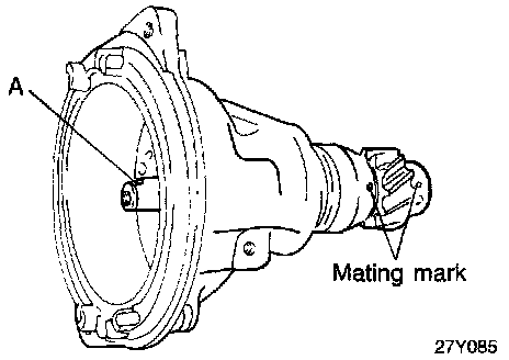 2. When aligning the mark on the gear and the housing, line up the pin holes with notch "A" on the end of the shaft as shown in the figure, then drive in a new pin.