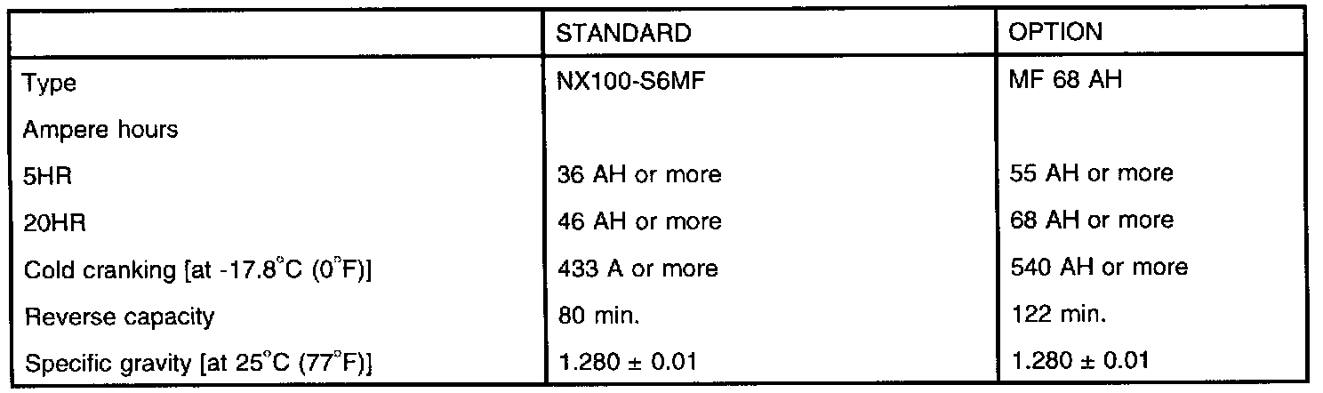 NOTE: COLD CRANKING AMPERAGE is the amperage that battery can delivery for 30 seconds and maintain a terminal voltage of 7.2 or greater at a specified temperature. REVERSE CAPACITY RATING is the amount of time a battery can deliver 25 A and maintain a minimum terminal voltage of 10.5 at 26.7° C (80° F).