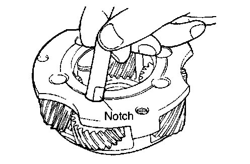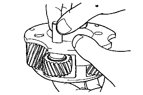 5. Insert the pinion shaft. Be sure that flattened end of the pinion shaft fits properly into the hole in the rear thrust plate when pinion shaft is inserted.