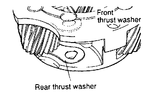 3. Line up holes in the rear thrust washer and front thrust washer with shaft of carrier.