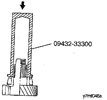 7. Install the needle roller bearing, first speed gear, bearing sleeve together using the special tool (09432-33300) as illustrated.