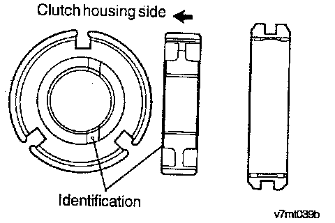 2. Install the first synchronizer ring noting its identification mark.