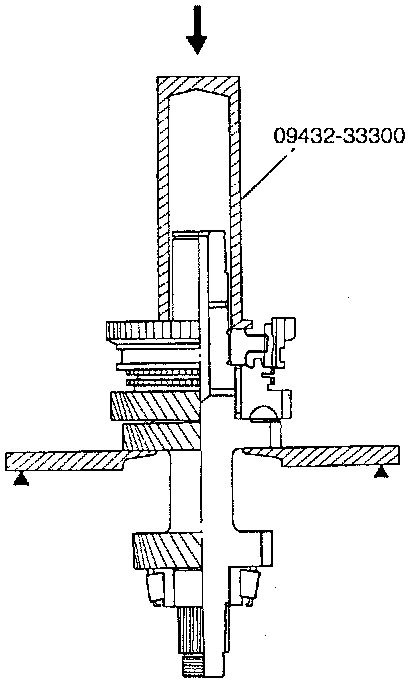 8. Install the taper roller bearing using the special tool (09432-33300)