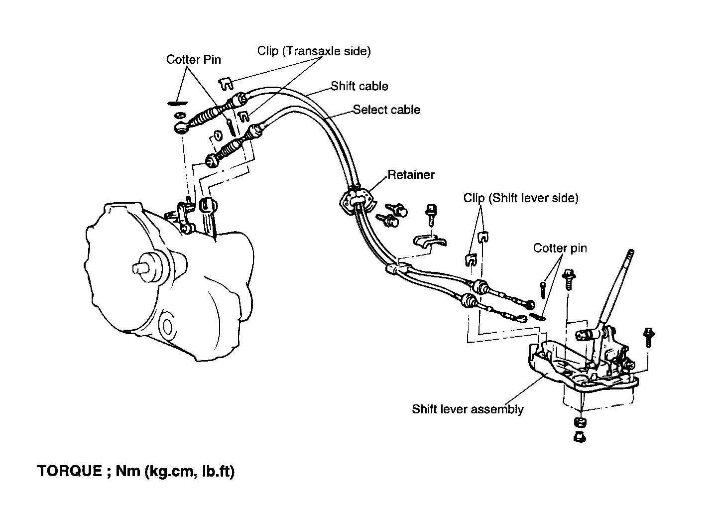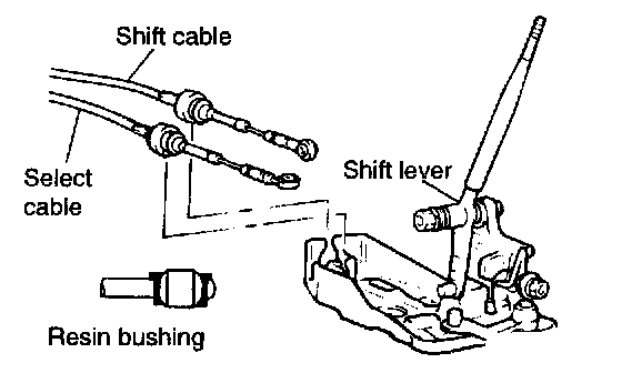 4) The flange side of the resin bushing at the shift cable end should be at the shift lever's cotter pin hole.