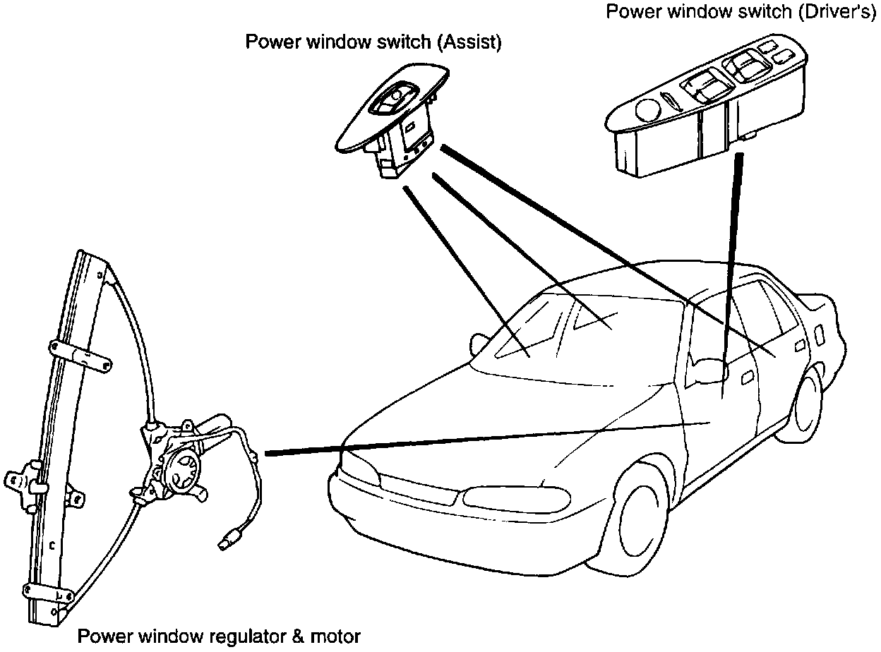 Disconnect the connectors. (Power Window Motor, Power Window Main Switch, Door Lock Actuator, Outside Mirror and Trunk Lid Opener Switch)