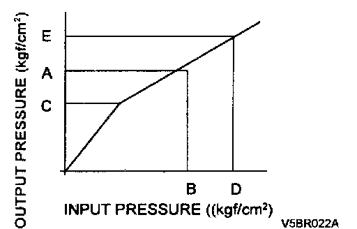 2. With the brakes applied, measure the input pressure and the output pressure. If the measured pressures are within the ranges as illustrated, the proportioning valve is good.
