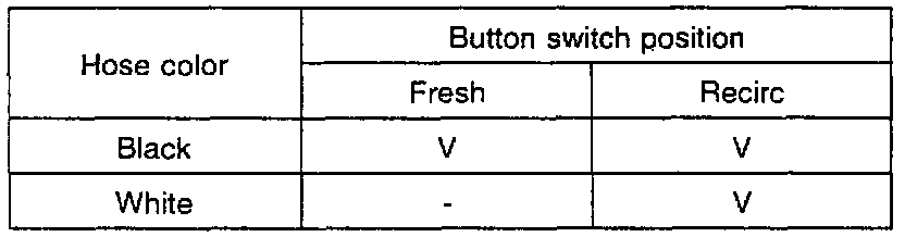 Connect the vacuum tester to back color hose for the fresh/ recirc control switch.