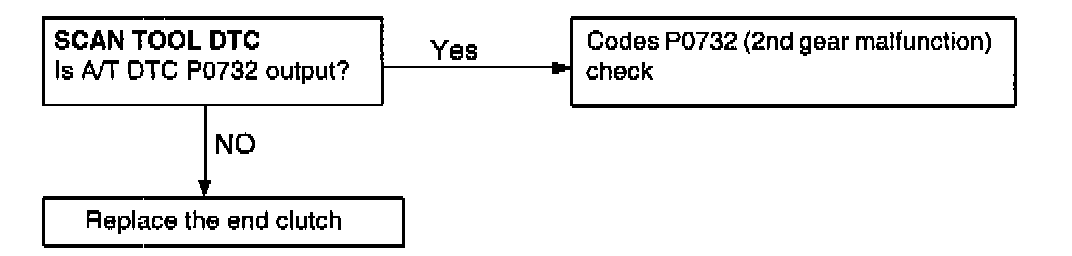 - If the value resulting from dividing the PGA output (input shaft rotation speed) by the 4th, gear ratio does not match the PG-B output (output shaft rotation speed) after 4th gear is engaged, DTC P0734 is output.
