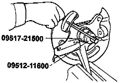 5. Remove the wheel bearing inner race (outside) from the front hub by using the special tool.