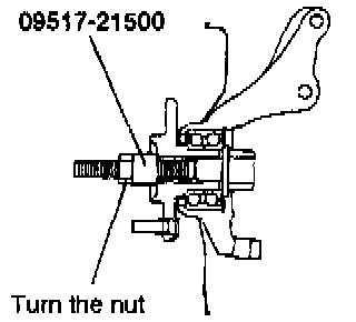4. Tighten the nut of the special tool and remove the front hub from the knuckle.