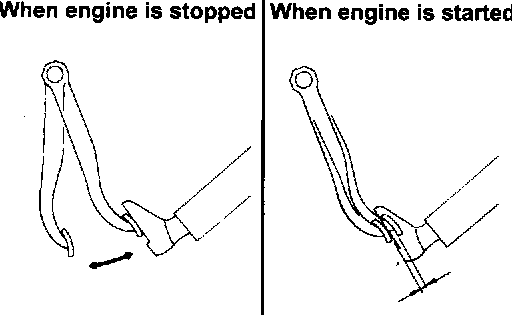 3. With the engine running, depress the brake pedal and then stop the engine. Hold the pedal depressed for 30 seconds. If the pedal height does not change, the booster is in good condition.