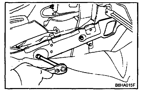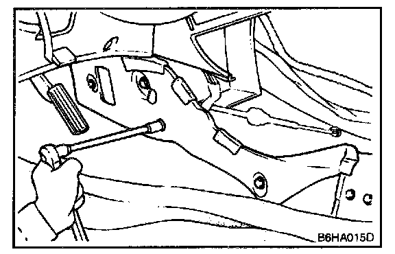 6. Turn over the carpet and remove the console mounting bracket (LH).