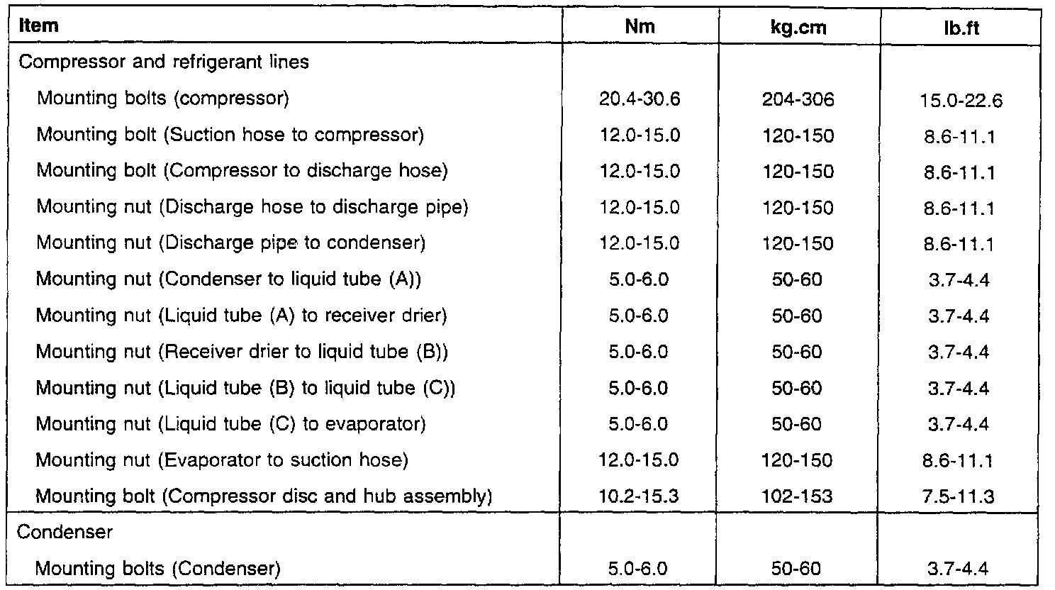Tightening Torque (For R-134A):
