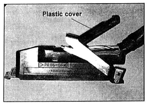 6. Tie wrap the plastic cover to the cable connector cover end.