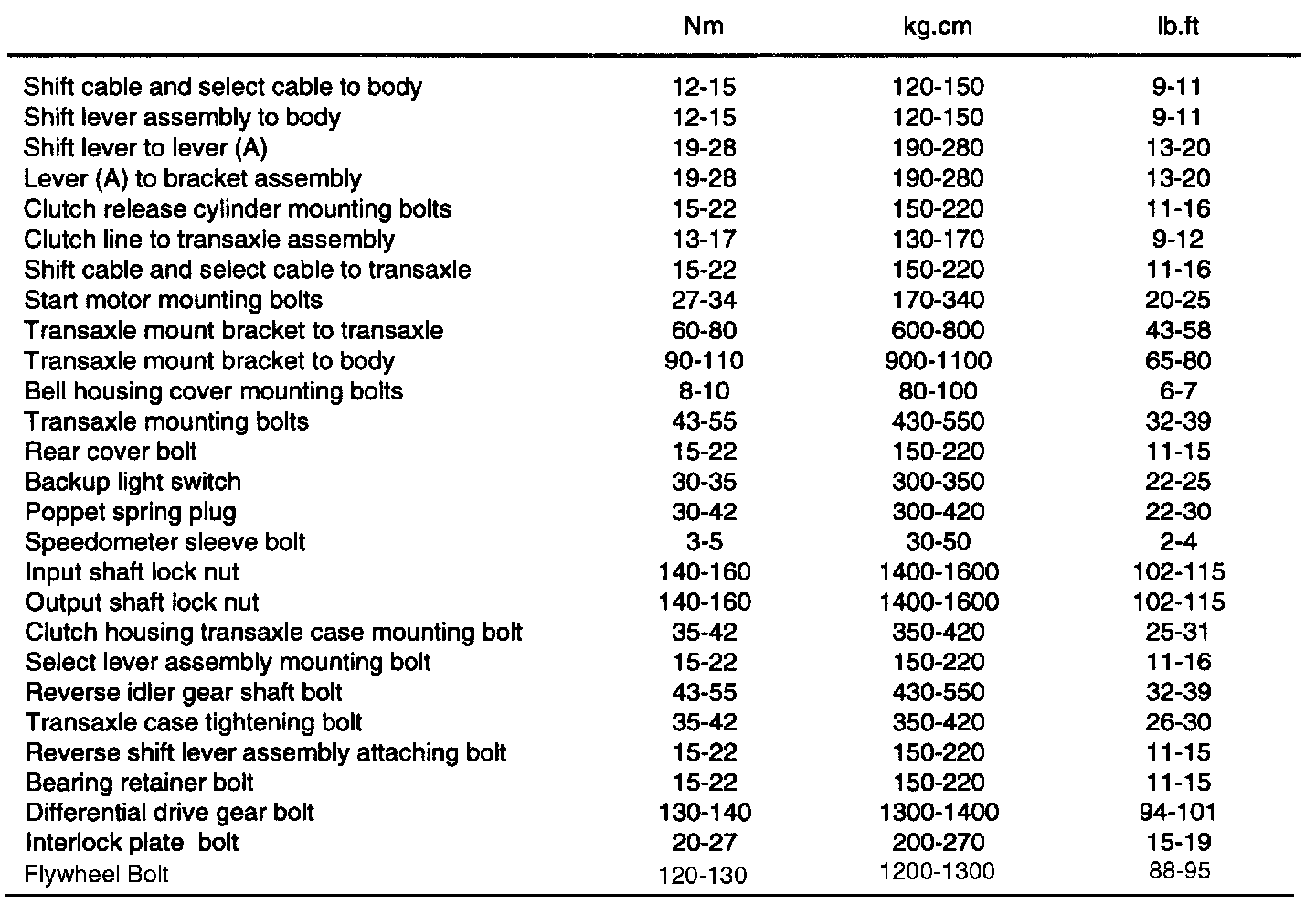 M/T Torque Data